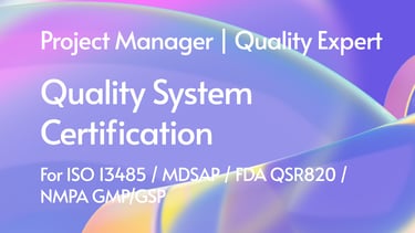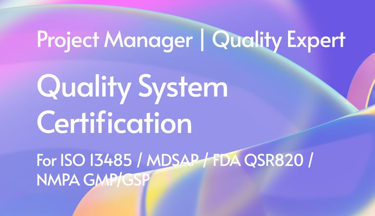 Class I to III medical device registration with FDA, EU, NMPA; Registration strategy; Regulatory/QMS/Quality Tools training and consulting.