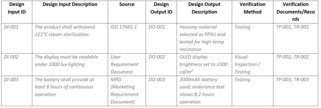 The ability to trace how each design input is translated into a design output—and subsequently into a physical product—is central to both compliance and product performance. Tools such as the Quality Function Deployment (QFD) matrix and the Design Input/Output Matrix provide structured mechanisms to document and visualize this traceability. These tools enhance team collaboration, support audit readiness, and ensure that complex user requirements are systematically addressed.